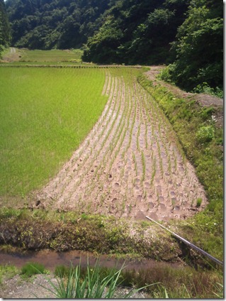 左側の緑色部分が、草が多くて稲がかくれちゃってます。